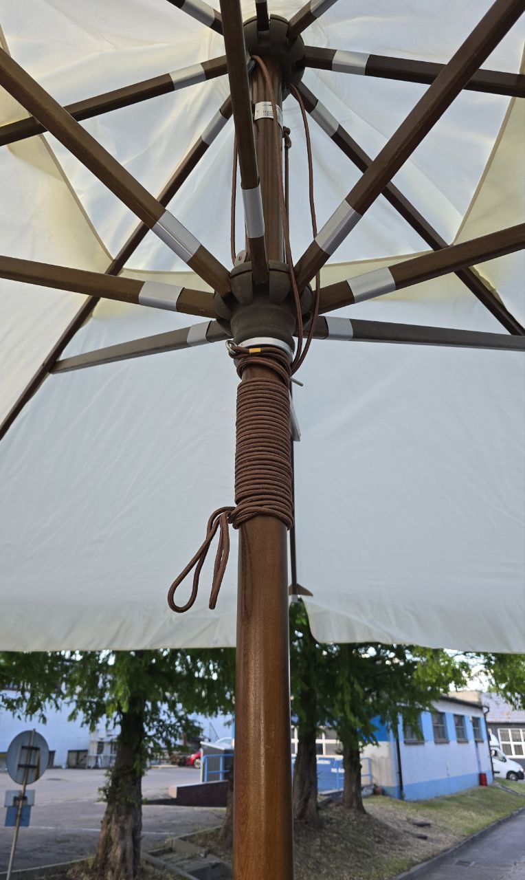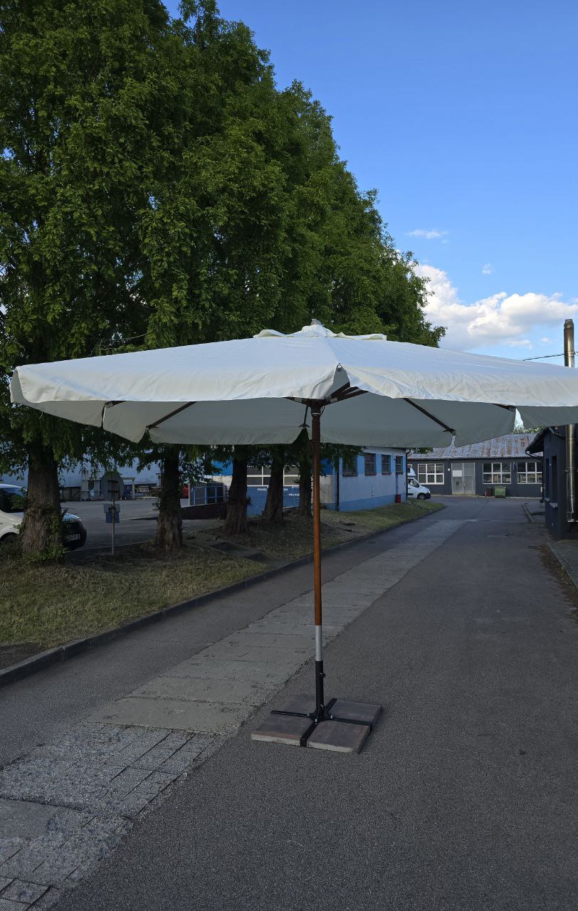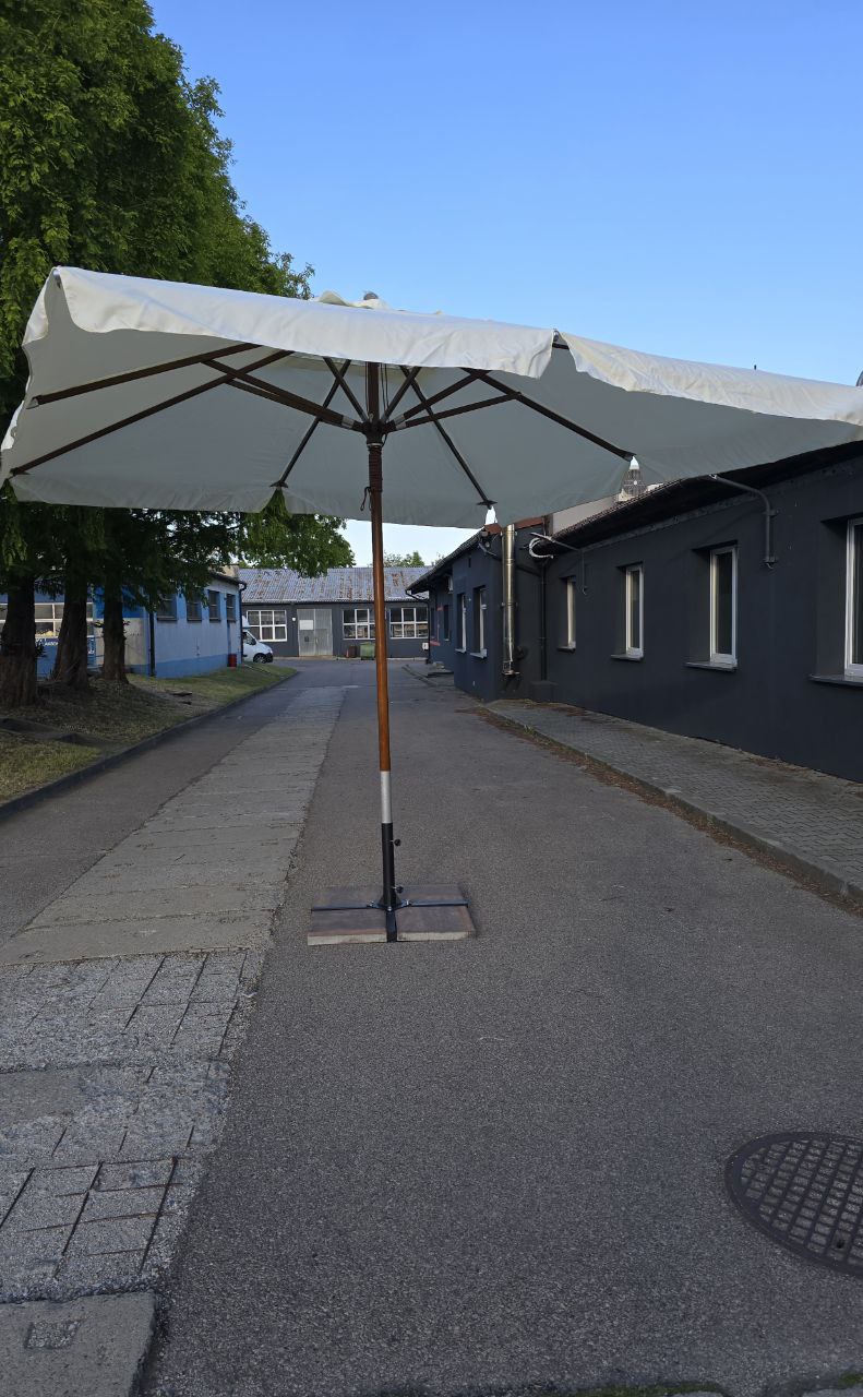 За рахунок розміру 3,5 × 3,5 м така модель перекриває більше площі (12,25 м²), тому дозволяє зменшити кількість парасоль на майданчику і зробити посадку більш акуратною. Щільна тканина 235 г/м² захищає від сонця та опадів, а блоковий механізм відкривання залишається простим і зрозумілим у щоденній роботі.