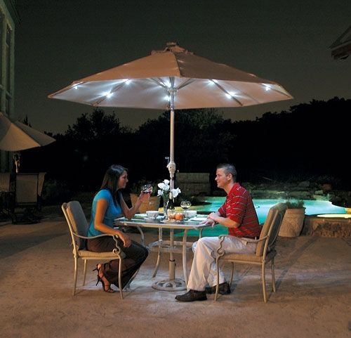 Світлодіоди (48 шт.) працюють від сонячної панелі, заряджаються протягом дня і забезпечують до 6 годин підсвітки ввечері. Парасоля відкривається як автоматично — з пульта або кнопки, так і вручну, що зручно в щоденній експлуатації. Тканина 235 г/м² захищає від сонця та опадів, а вітровий клапан знижує навантаження при вітрі.